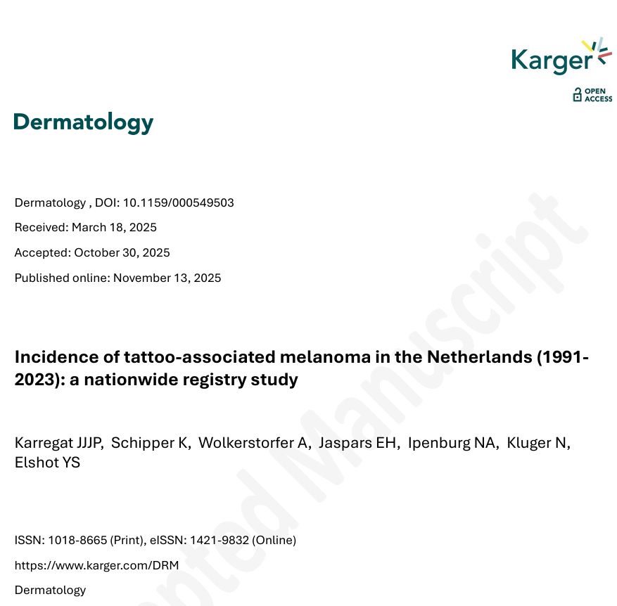 -Zwischen 1991 und 2023 wurden in den Niederlanden 94 Fälle von Melanomen auf tätowierter Haut (TAMs) aus dem Pathologieregister PALGA identifiziert, entsprechend 0,07 % aller Melanome. Mit einem NNE von 6,0 und einer mittleren Breslow-Dicke von 0,9 mm deuten die Daten darauf hin, dass Tätowierungen wahrscheinlich keine wesentliche Rolle bei der Melanomentstehung spielen. Weitere Studien sind jedoch nötig, um diese Befunde zu bestätigen und die gesundheitlichen Auswirkungen von Tätowierungen umfassender zu bewerten.
